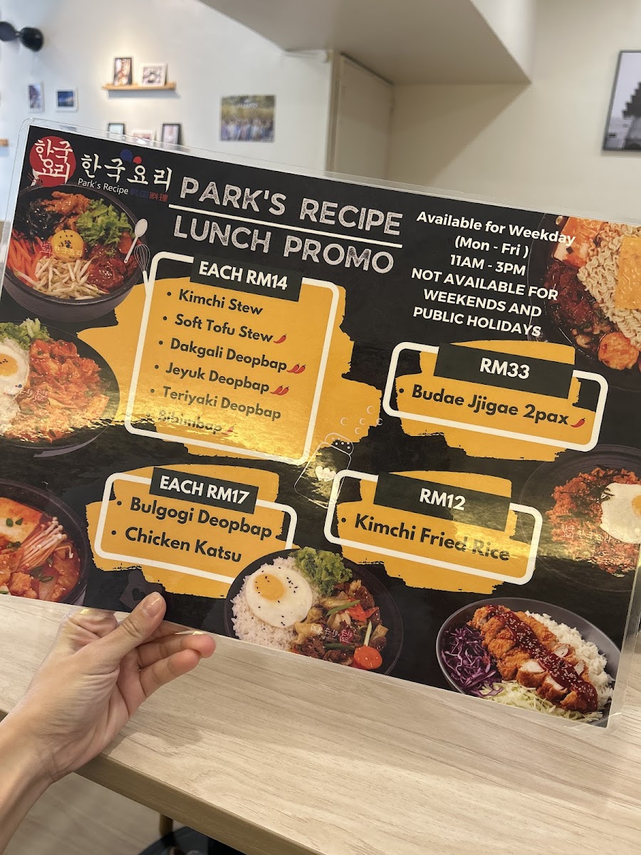 Introducing the Menu at Park's Recipe Korean Restaurant